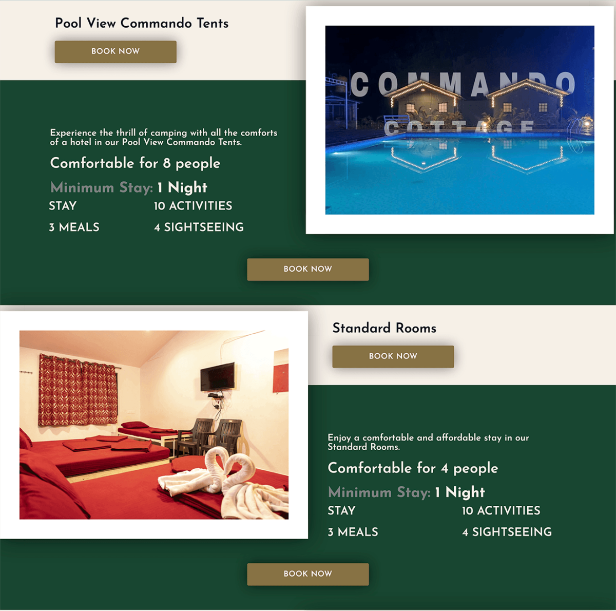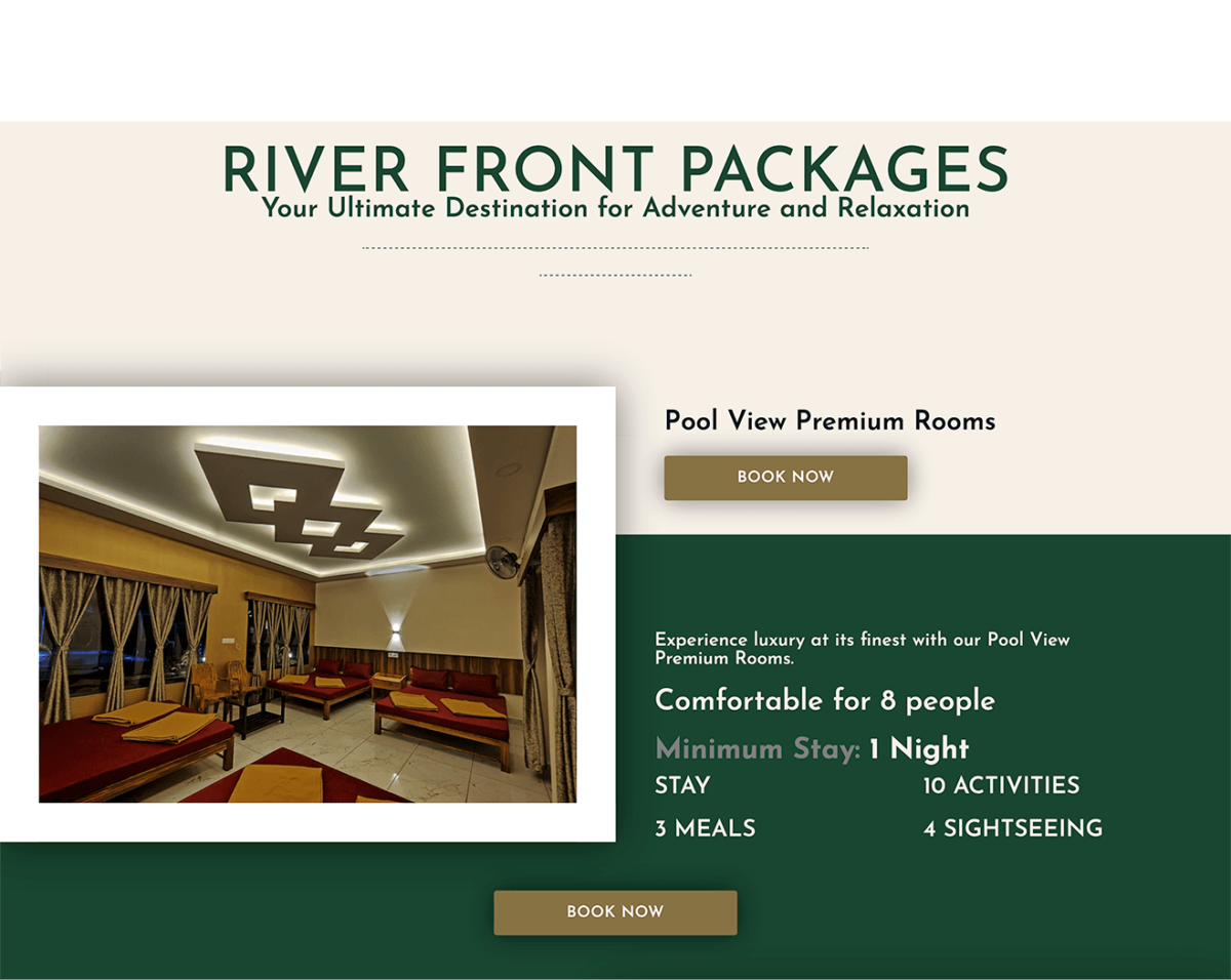 Resort, strategically positioned on the banks of the Kali River in Dandeli, Karnataka, stands as a testament to harmonizing luxury with nature’s wonders. This case study delves into the journey of revamping the resort’s online presence, focusing on UX/UI and web design to elevate user experience.